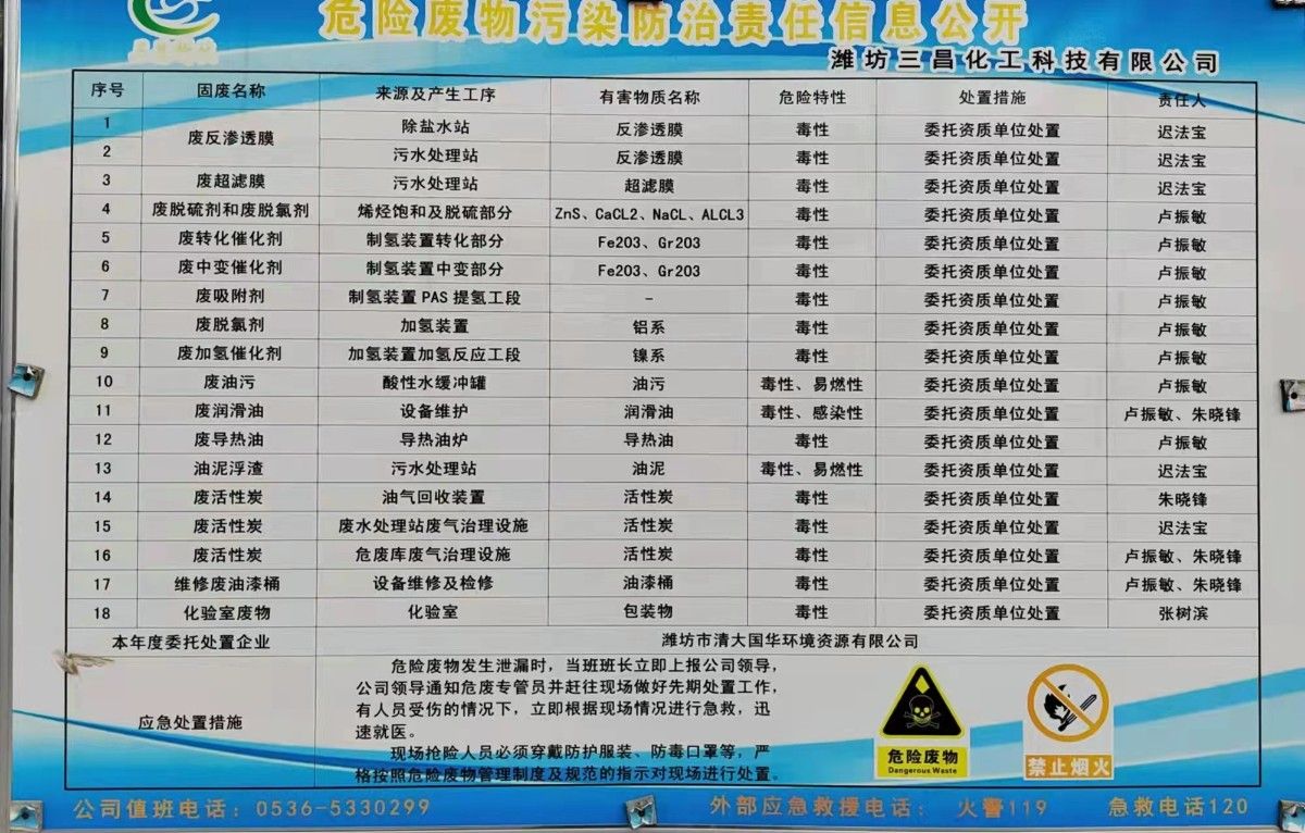 濰坊三昌化工科技有限公司2024年度危險(xiǎn)廢物污染防治信息公示