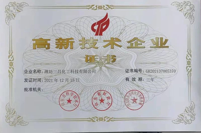 濰坊三昌化工科技有限公司被評(píng)審為“高新技術(shù)企業(yè)"